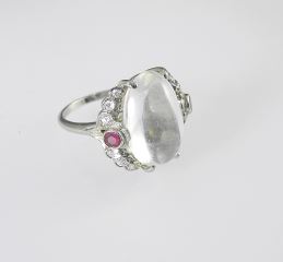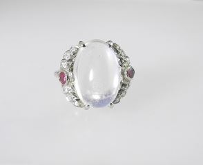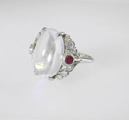 Birks 18K (marked) White Gold & Moonstone Ring, Size 5 1/4, 4.9g.