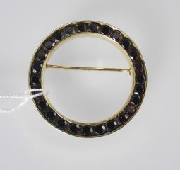 LOT 139 14K (marked) Gold & Garnet Circular Brooch, 1 1/8" Diameter, 4.4g. Estimate: $200 - $400 Sold For: $225 Auction Date: Tuesday, October 28 2025 at 4:00 PM