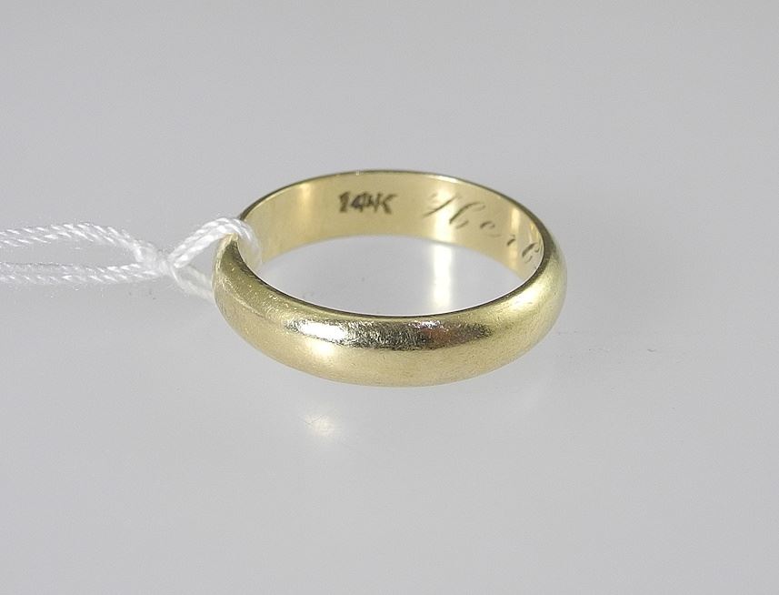 LOT 177 14K (marked 14K) Gold Ring Band, Size 7, 4.1g. Estimate: $300 - $400 Sold For: $300 Auction Date: Tuesday, October 28 2025 at 4:00 PM