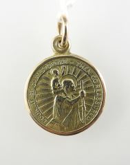 LOT 174 9CT (marked) Gold St. Christopher Pendant, 17mm, 2.5g. Estimate: $120 - $180 Sold For: $170 Auction Date: Tuesday, October 28 2025 at 4:00 PM