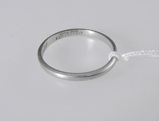 LOT 176 Tiffany & Co. Platinum/Marked Irid- Plat.) Ring, 1947 Inscription, Size 5, 1.8g. Estimate: $200 - $300 Sold For: $180 Auction Date: Tuesday, October 28 2025 at 4:00 PM