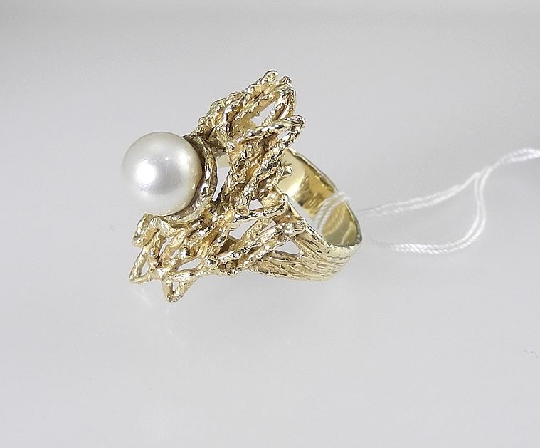 LOT 15 Modernist 14K (marked) Gold & Pearl Ring, Size 7 1/2, 11.2g. Estimate: $600 - $800 Sold For: $800 Auction Date: Tuesday, October 28 2025 at 4:00 PM