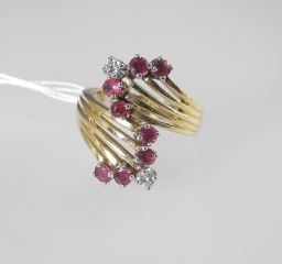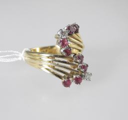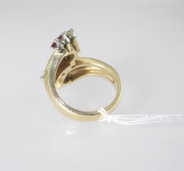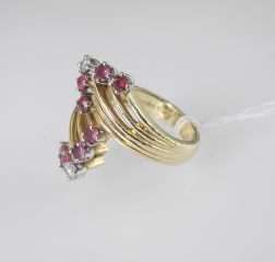 14-18K (marked) Gold Ruby & Diamond Ring, Size 5 3/4, 8.2g.
