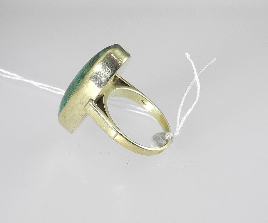 14K (marked) Gold & Malachite Ring, Size 6 3/4, 8.2g.