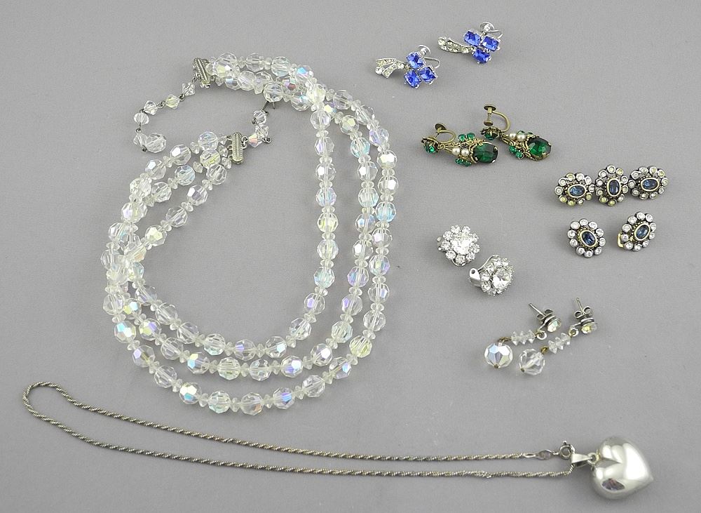 LOT 379 Aurora Borealis Crystal Necklace & Earrings with Costume Earrings. Estimate: $60 - $100 Auction Date: Tuesday, October 28 2025 at 4:00 PM