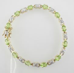 LOT 120 Gold Plated Silver (925) & Peridot Bracelet, 7"L, 10.3g. Estimate: $80 - $100 Sold For: $100 Auction Date: Tuesday, October 28 2025 at 4:00 PM