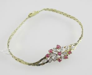 LOT 78 14K (marked) Gold Ruby & Diamond Bracelet, 6 5/8"L, 6.8g. Estimate: $400 - $500 Sold For: $475 Auction Date: Tuesday, October 28 2025 at 4:00 PM
