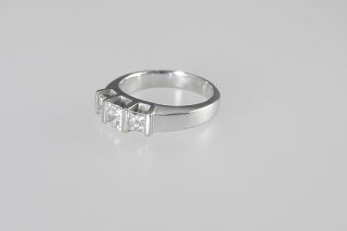 18K (marked) White Gold Three Stone Diamond Ring, Size 6, 6.8g.