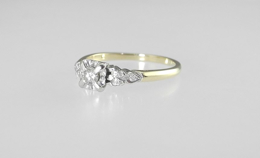 14K (marked) Gold & Diamond Shoulder Set Ring, Size 7 1/2, 2.9g.