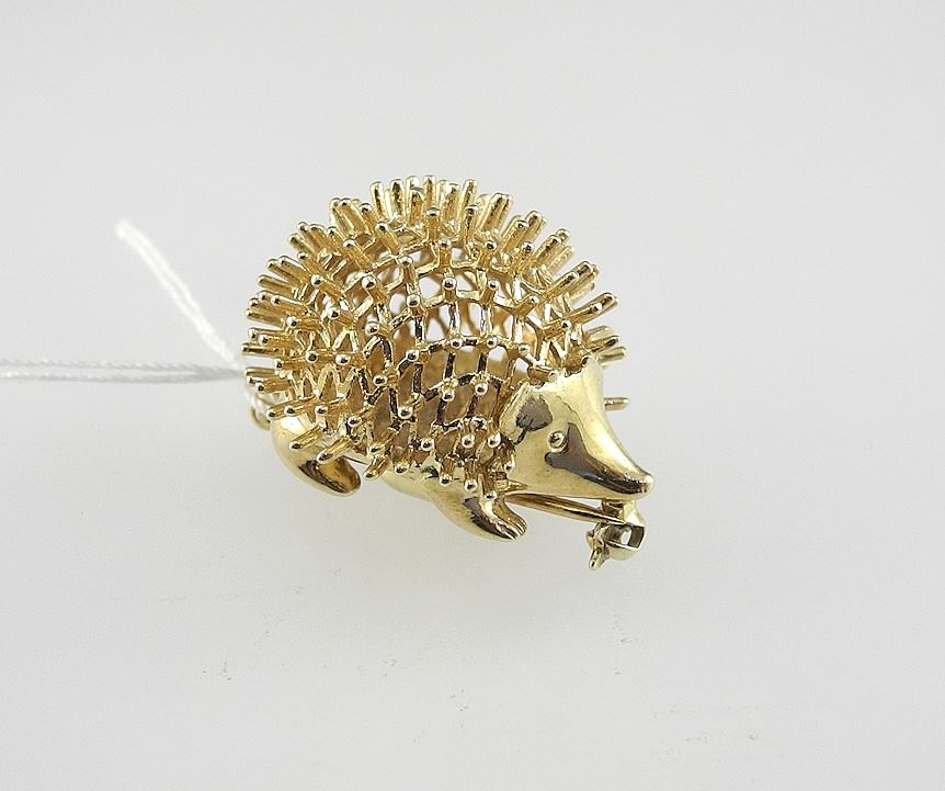 German 14K (marked) Gold Hedgehog Brooch, 1 1/4"L, 9.9g.