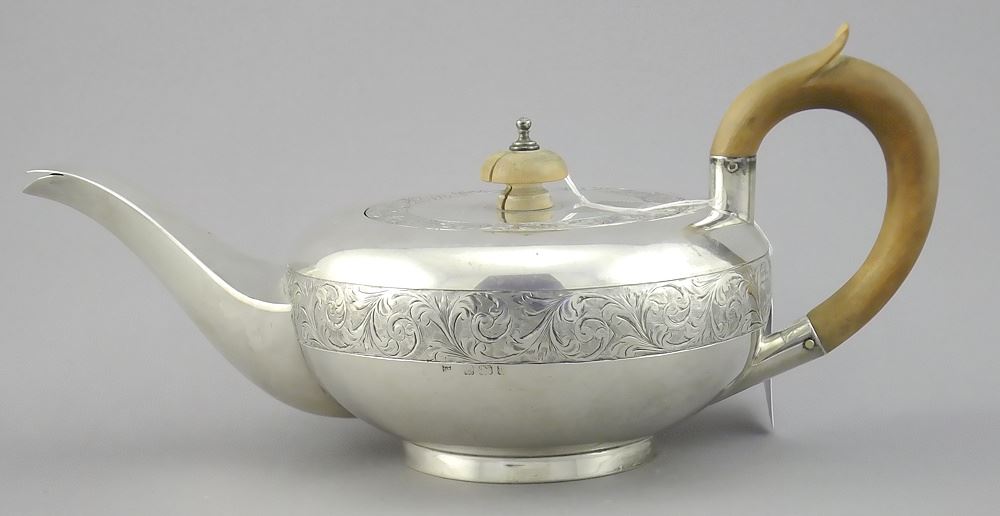 Hallmarked Silver Two Cup Teapot, 9"L, 297g.