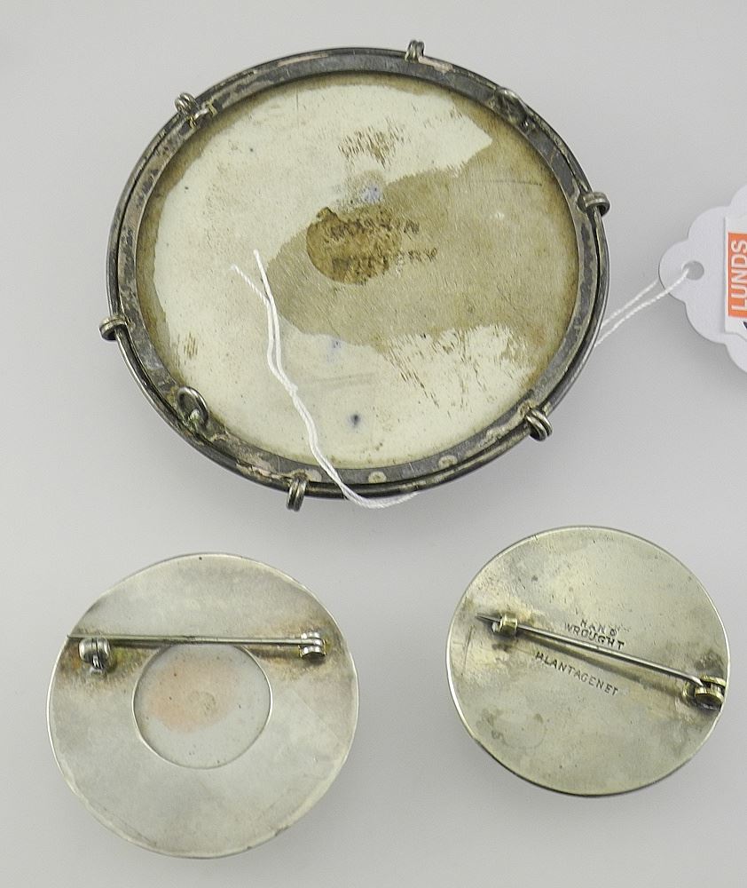 LOT 85 Three Ruskin Pottery Cabochons: One Impressed Ruskin/ One Marked Plantagenet, 1 3/8-2 5/8" Estimate: $100 - $200 Sold For: $170 Auction Date: Tuesday, February 03 2026 at 4:00 PM