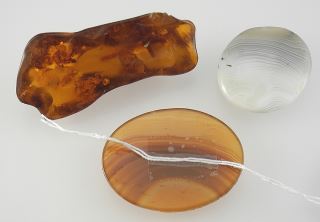 Two Agate & One Amber Specimen, 1 1/4-2 1/8"L, TW 29.2g.