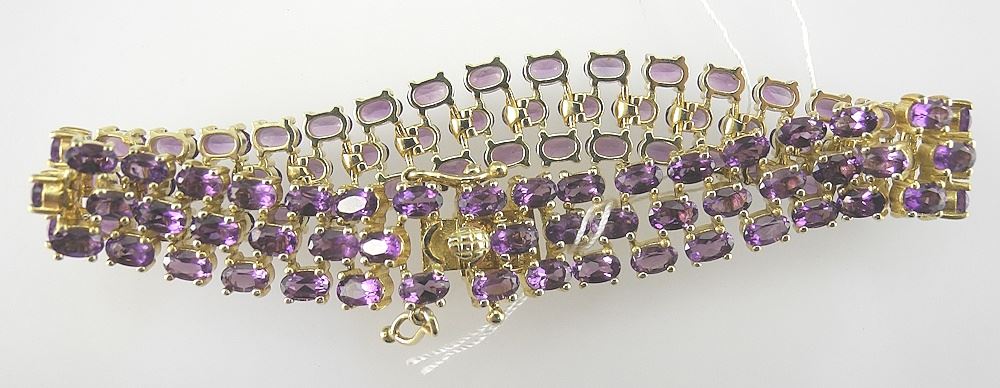 LOT 131 Silver Gilt (925) & Amethyst Triple Row Bracelet, 7 3/4"L, 29.5g. Estimate: $80 - $100 Sold For: $100 Auction Date: Tuesday, February 03 2026 at 4:00 PM