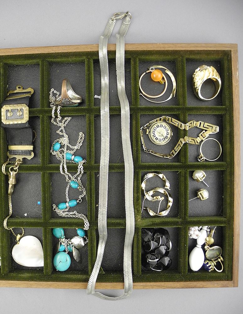 LOT 240 Tray of Vintage Jewelry with Gemstones & Silver (Rock Crystal, Turquoise, Amber etc). Estimate: $60 - $100 Sold For: $80 Auction Date: Tuesday, February 03 2026 at 4:00 PM
