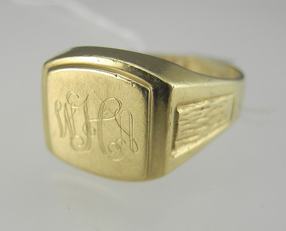 Gent's 10K (marked) Gold Signet Ring , Size 9 1/2, 5.9g (shank split).