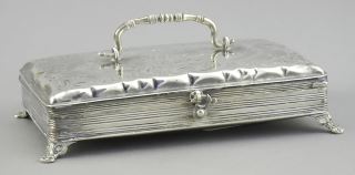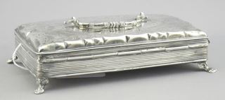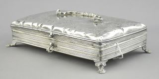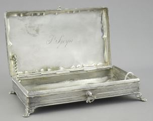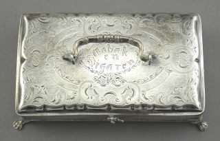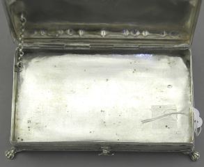 LOT 10 19th C. Dutch Silver (marked) "Tabak En Sigarten" Box, 1 3/8 x 5 5/8 x 3 1/2", 153g. Estimate: $200 - $300 Sold For: $300 Auction Date: Tuesday, February 03 2026 at 4:00 PM