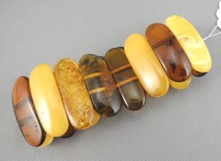 Multi-Coloured Amber Stretch Bracelet, 1 1/2"h, 30.2g.