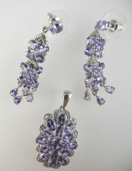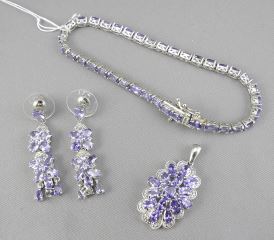Sterling Silver (marked STS 925) & Tanzanite Demi Parure Bracelet, 7 1/2"L, TW 35.7g.