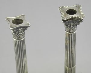 LOT 48 Pair of Mappin & Webb Prince's Plate Corinthiam Candlesticks, 9 1/4"h (lacking one nozzle). Estimate: $60 - $120 Sold For: $60 Auction Date: Tuesday, February 03 2026 at 4:00 PM