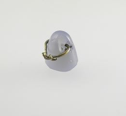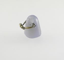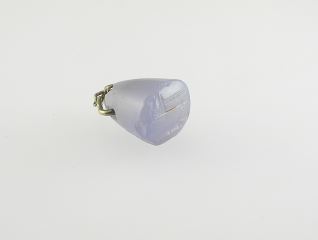 Assyrian Blue Chalcedony Stamp Seal Engraved with Nabu on Wire bail, 1/2" H, 6.1g.