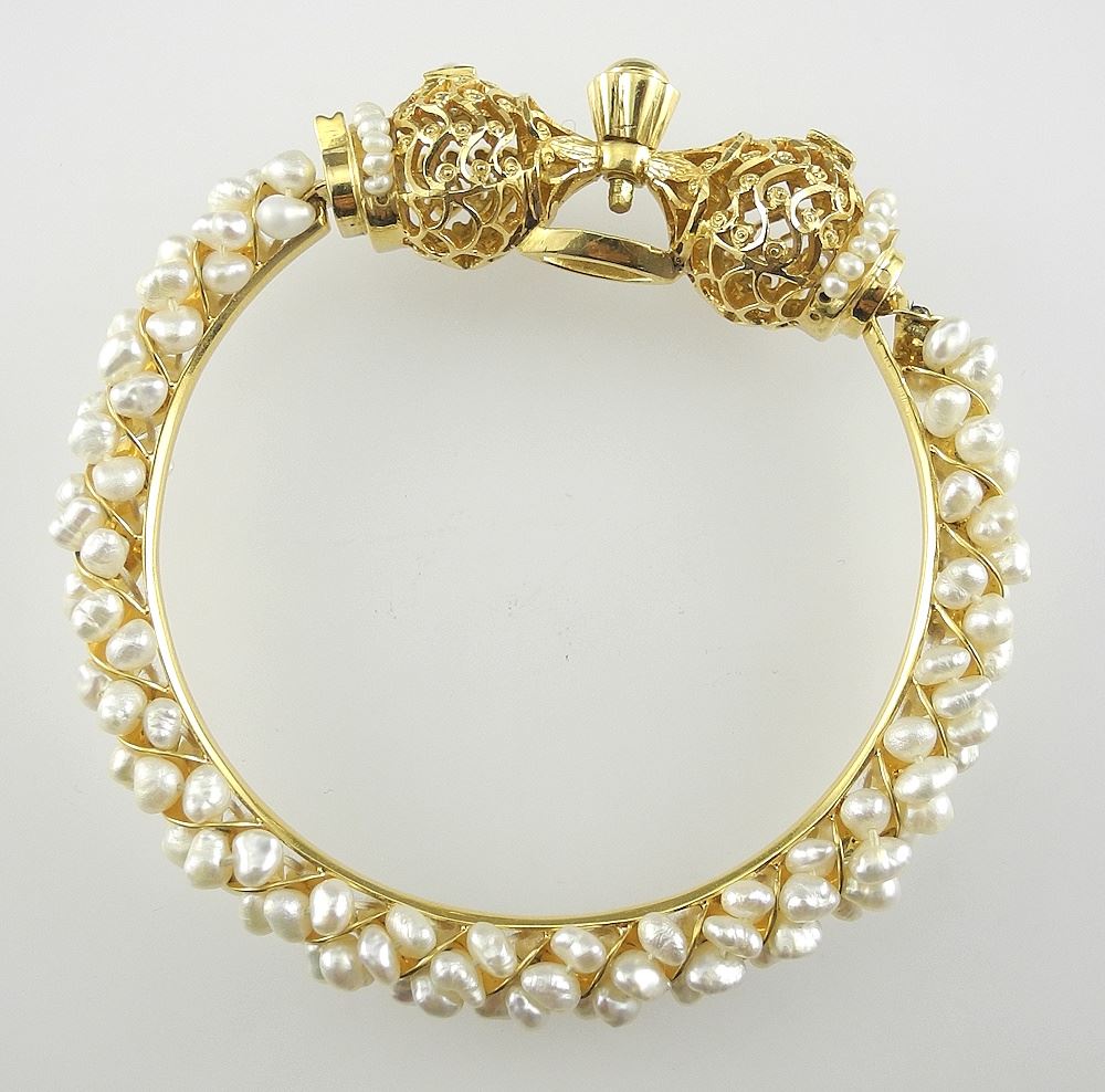 22K Gold & Pearl Hinged Bracelet, 2 5/8"w, 40g.
