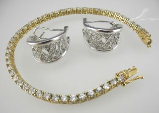 LOT 93 Gold Plated Sterling Silver (marked 925) & Zircon Tennis Bracelet (7"L) & Earrings. Estimate: $80 - $140 Auction Date: Tuesday, February 03 2026 at 4:00 PM