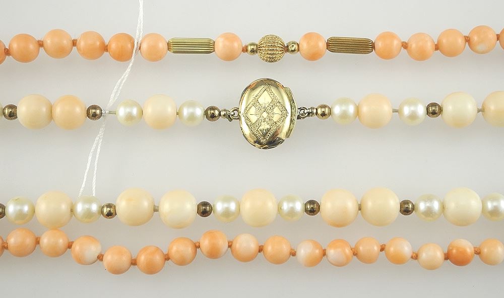 Two Coral Necklaces with 14K Clasp & Pearls/Tested 10K Clasps, 29 & 26"L, NO EXPORT.