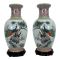 Pair of Chinese Famille Rose Porcelain "Peacock" Vases (14"h) with Stands.