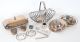 Hallmarked Silver Toast Rack (4"L) w/ Sterling (marked) Silver Napkin Ring & Strainer TW 170g.