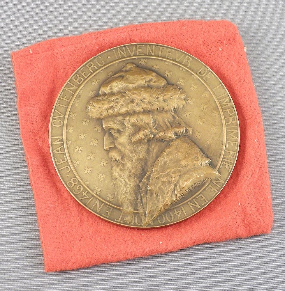 LOT 166 Bronze Medallion: Jean Gutenberg Inventeur del Imprimerie... 199g. Estimate: $60 - $100 Sold For: $50 Auction Date: Tuesday, April 14 2026 at 4:00 PM