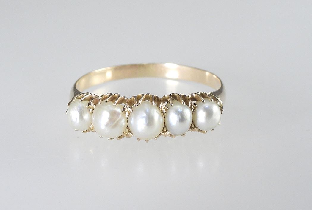 10K Five Pearl Ring, Size 8 3/4, 2.42g.