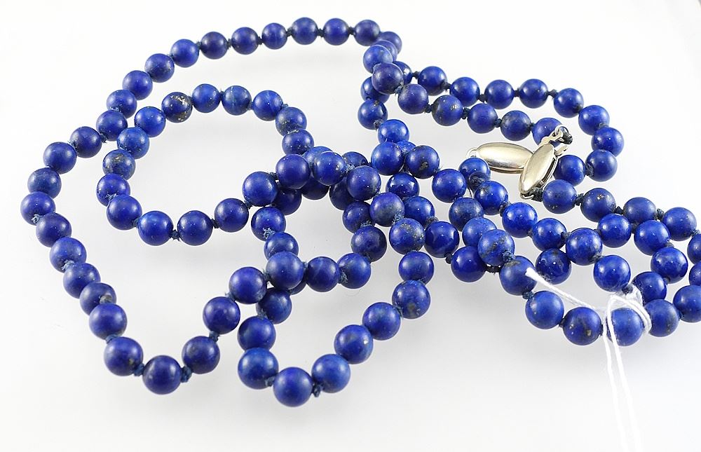24 Inch 6mm Natural Lapis Lazuli Necklace & 9" Bracelet with 14K Clasp.