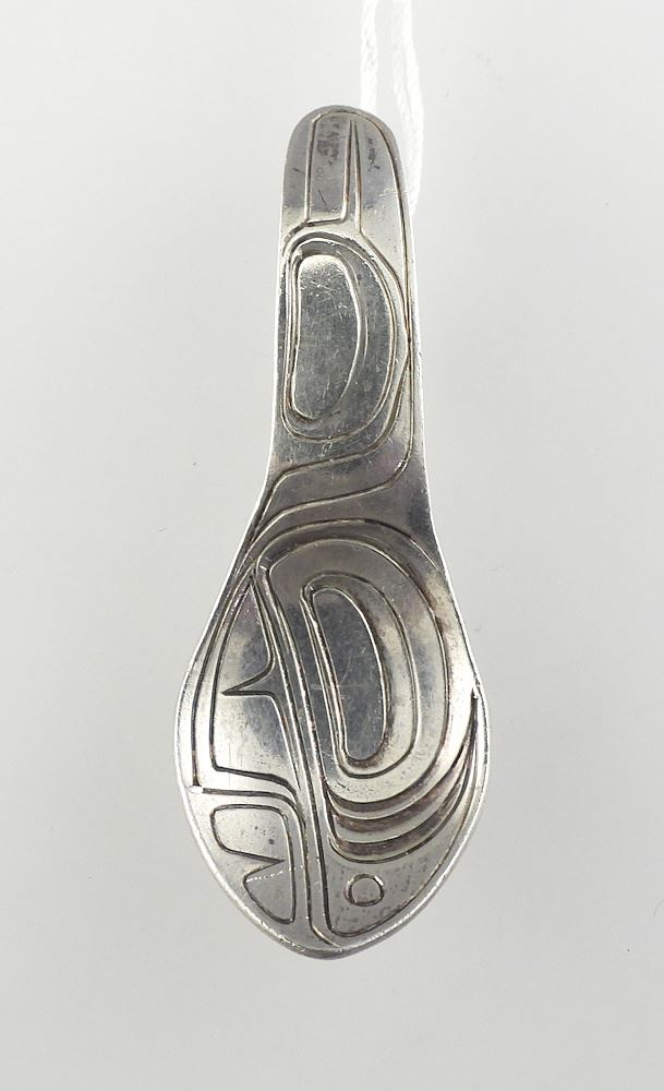 LOT 120 Kwagiulth Silver Spoon Pendant signed B. (Bob) Neel /83, 1 5/8"L, 3.7g. Estimate: $100 - $150 Auction Date: Tuesday, April 14 2026 at 4:00 PM