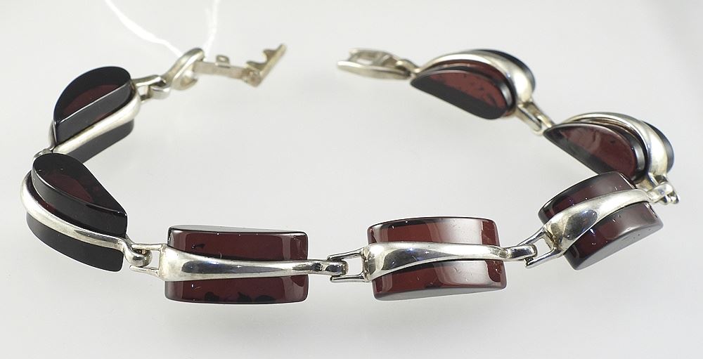 Sterling Silver (925) & Cherry Amber Bracelet, 7"L, 15.8g.