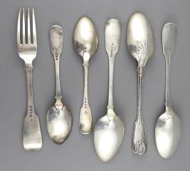 Six Pieces Georgian Silver Flatware, 434g.