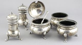 Five Pcs. Sterling Silver Condiment Set, 257g with 3 Liners.