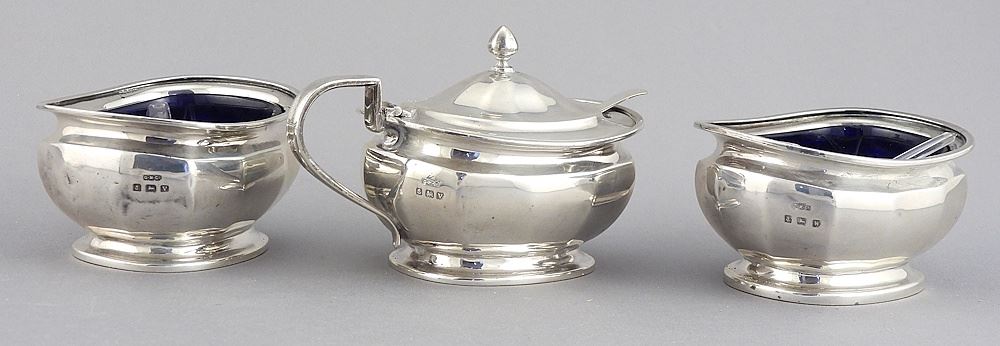 Hallmarked Silver Five Piece Condiment Set, Mustard 4"L, 297g.