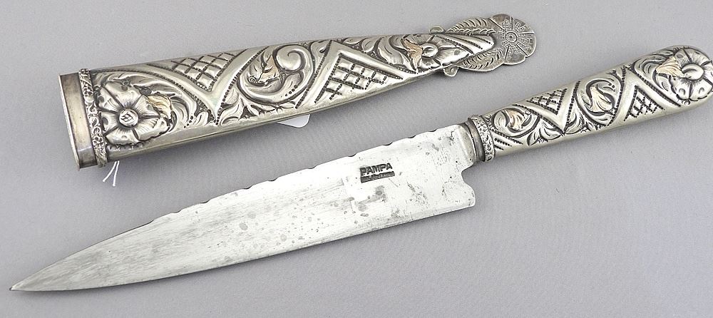Argentinian Silver Alloy & 18K Inlaid Dagger, 12 1/2"L.