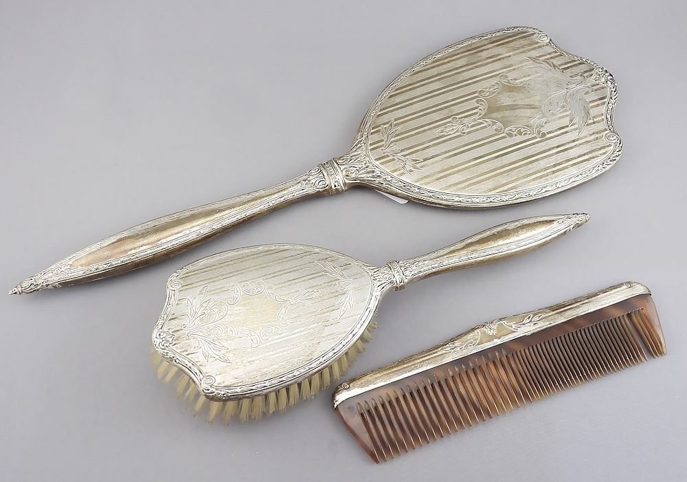 Three Piece International Sterling Dresser Set, Mirror 15 3/4"L, TW 831g.