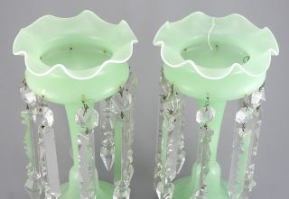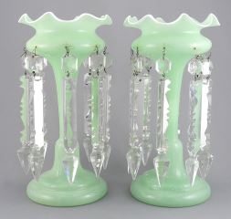 LOT 65 Pair of Pale Green Glass Lustres, 10 1/4"h. Estimate: $60 - $100 Sold For: $120 Auction Date: Tuesday, April 14 2026 at 4:00 PM