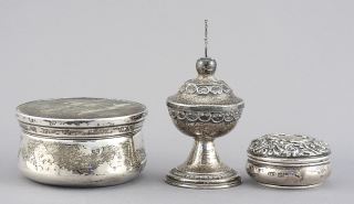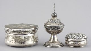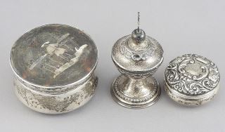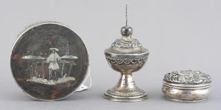LOT 137 Three Silver Boxes: 2 Hallmarked/ 1 Israel, Tortoiseshell, TW 100g, CDN BIDDERS ONLY. Estimate: $200 - $300 Auction Date: Tuesday, April 14 2026 at 4:00 PM