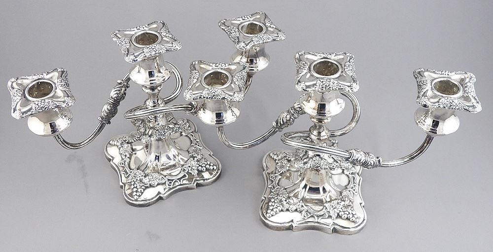 LOT 69 Pair of Silver Plated Three Socket Candelabra, 6 1/2"h. Estimate: $80 - $100 Sold For: $70 Auction Date: Tuesday, April 14 2026 at 4:00 PM