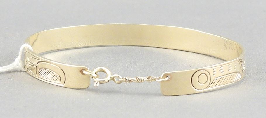 Kwagiulth 14K (clasp marked) Gold Bracelet signed Amos Dawson 8/77, 1/4 x 2 1/4", 7.7g.