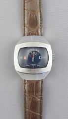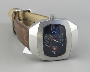 LOT 102 Sicura by Breitling Jump Hour Blue Dial Wrist Watch (working order). Estimate: $200 - $400 Sold For: $300 Auction Date: Tuesday, April 14 2026 at 4:00 PM