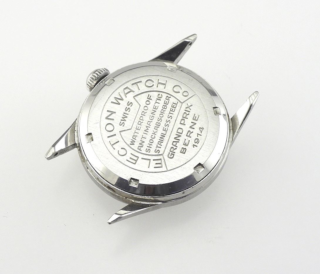 LOT 312 Election WWII Era Gilt Dial all Stainless Steel Wrist Watch (working order). Estimate: $50 - $80 Sold For: $50 Auction Date: Tuesday, April 14 2026 at 4:00 PM
