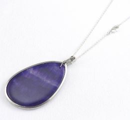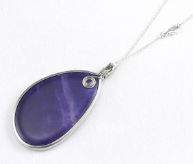 Banded Amethyst Agate Gemstone Pendant, 2 3/4 x 1 1/2", 30.4g.