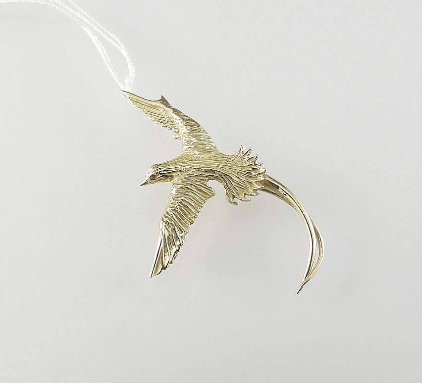 LOT 17 18K (marked 18c) Yellow Gold "Quetzal" Brooch/Pendant, 1 1/4"w, 3.4g. Estimate: $300 - $400 Sold For: $350 Auction Date: Tuesday, April 14 2026 at 4:00 PM
