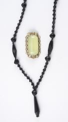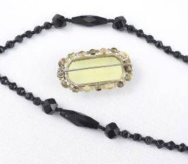 LOT 298 French Jet Necklace (29"L/30g) with Victorian Yellow Agate Brooch, 1 3/4"w. Estimate: $60 - $100 Sold For: $30 Auction Date: Tuesday, April 14 2026 at 4:00 PM