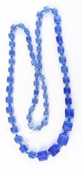 LOT 302 Czech Blue Glass Graduated Cube Necklace, 30"L. Estimate: $60 - $100 Sold For: $50 Auction Date: Tuesday, April 14 2026 at 4:00 PM